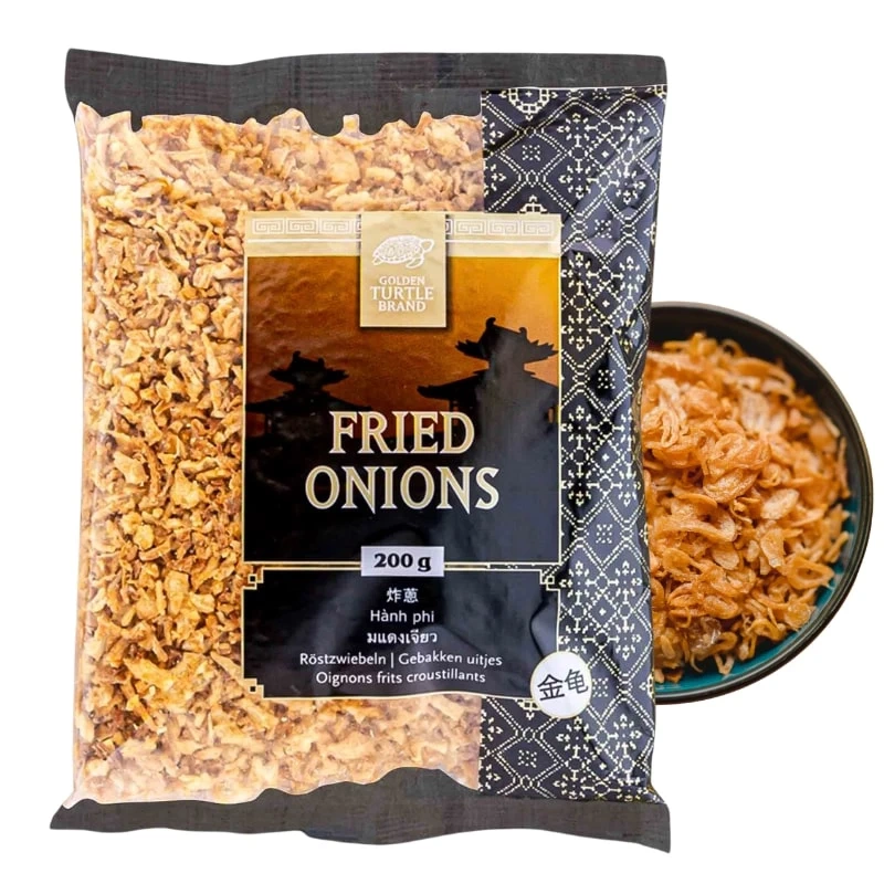 Prażona cebula GOLDEN TURTLE to niezastąpiony dodatek kuchni azjatyckiej, europejskiej i wegańskiej.