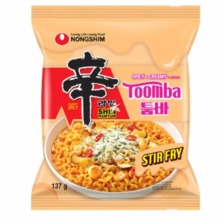 - Toomba Shin Ramyun Creamy & Spicy od marki Nongshim to autorska wersja kultowej zupy ramen, która łączy w sobie klasyczny charakter ostrego bulionu z aksamitną, śmietanową nutą.