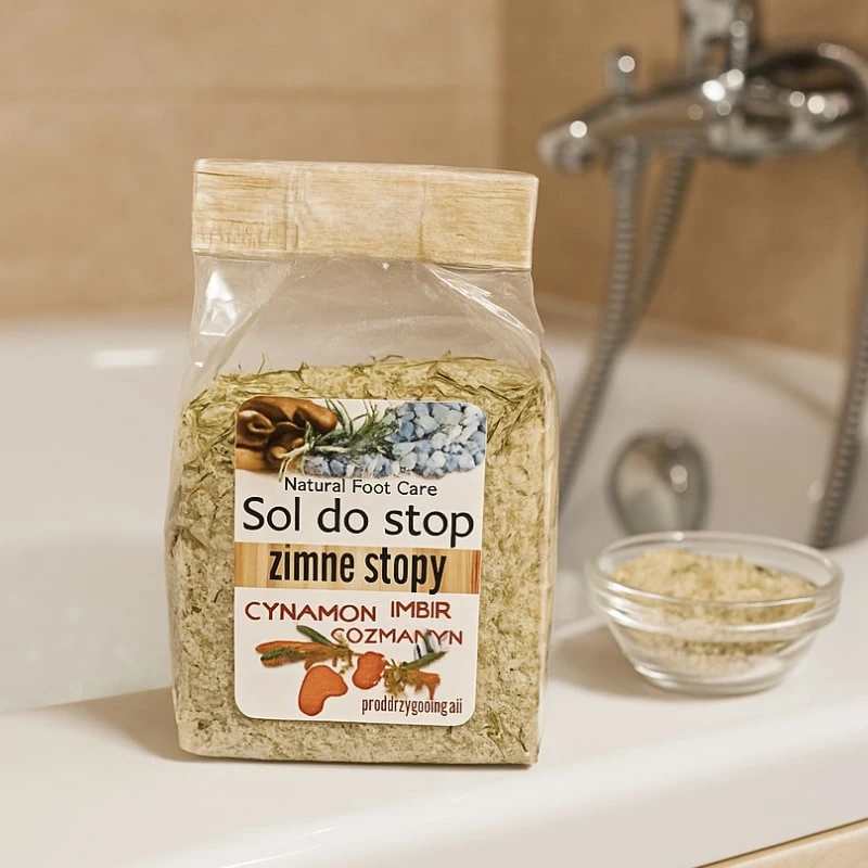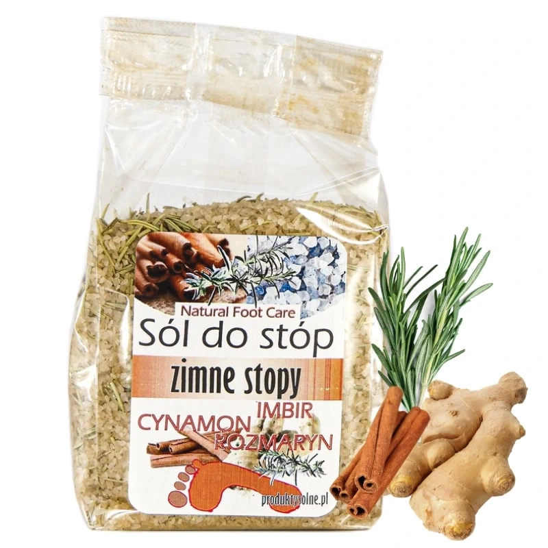 - Naturalna sól, która rozgrzeje Twoje stopy z cynamonem, imbirem i rozmarynem. To idealny wybór dla osób, które zmagają się z problemem marznących stóp, zmęczenia i uczucia ciężkości.