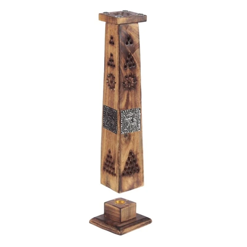 Posiada ukryte w środku miejsce na patyczek lub stożek zapachowy. Po zapaleniu, delikatny dym wydostaje się przez ozdobne otwory, tworząc spokojny, hipnotyzujący efekt wizualny. Drewniana konstrukcja chroni przed rozprzestrzenianiem się popiołu i ułatwia utrzymanie porządku.