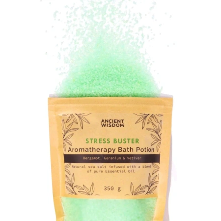 Aromaterapeutyczna sól do kąpieli Pogromca Stresu – bergamotka, geranium i wetiwer.