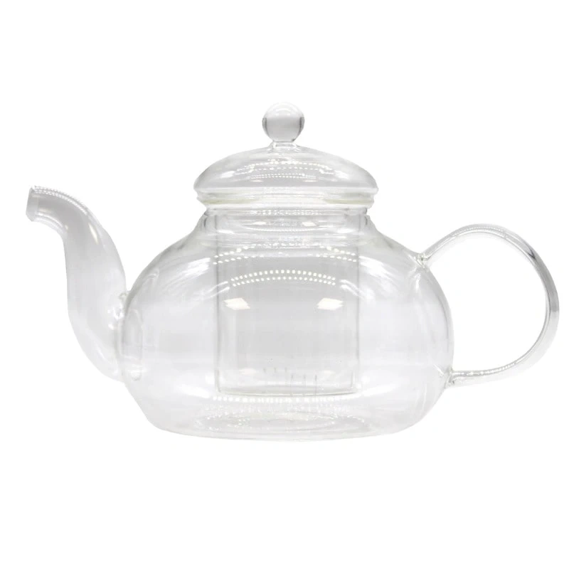 Szklany czajnik z zaparzaczem – klasyka w lekkiej, eleganckiej formie.