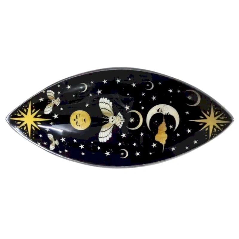 Podstawka pod kadzidła "Nocna Sowa" – ręcznie emaliowane rękodzieło z Indii.