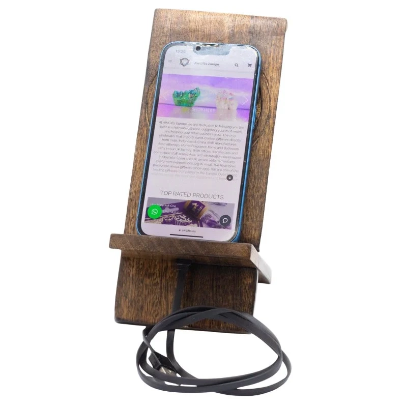 - Ten dekoracyjny, ręcznie rzeźbiony drewniany stojak na telefon to praktyczna podstawka, która ułatwia wygodne korzystanie ze smartfona podczas pracy, oglądania filmów, gotowania czy wideorozmów.