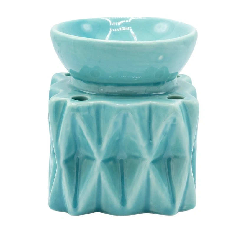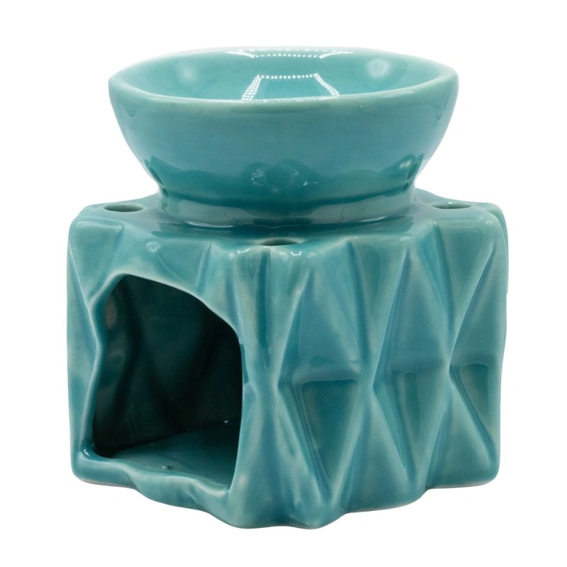 Niebieski/turkusowy ceramiczny kominek do wosków i olejków – dekoracyjny podgrzewacz zapachowy.