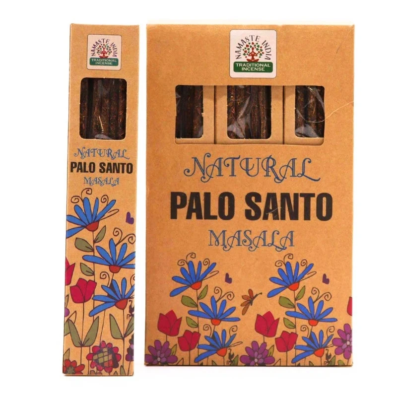 • Naturalne kadzidła Palo Santo Masala to aromatyczne patyczki stworzone z kompozycji sproszkowanego drewna Palo Santo i tradycyjnych mieszanek masala.