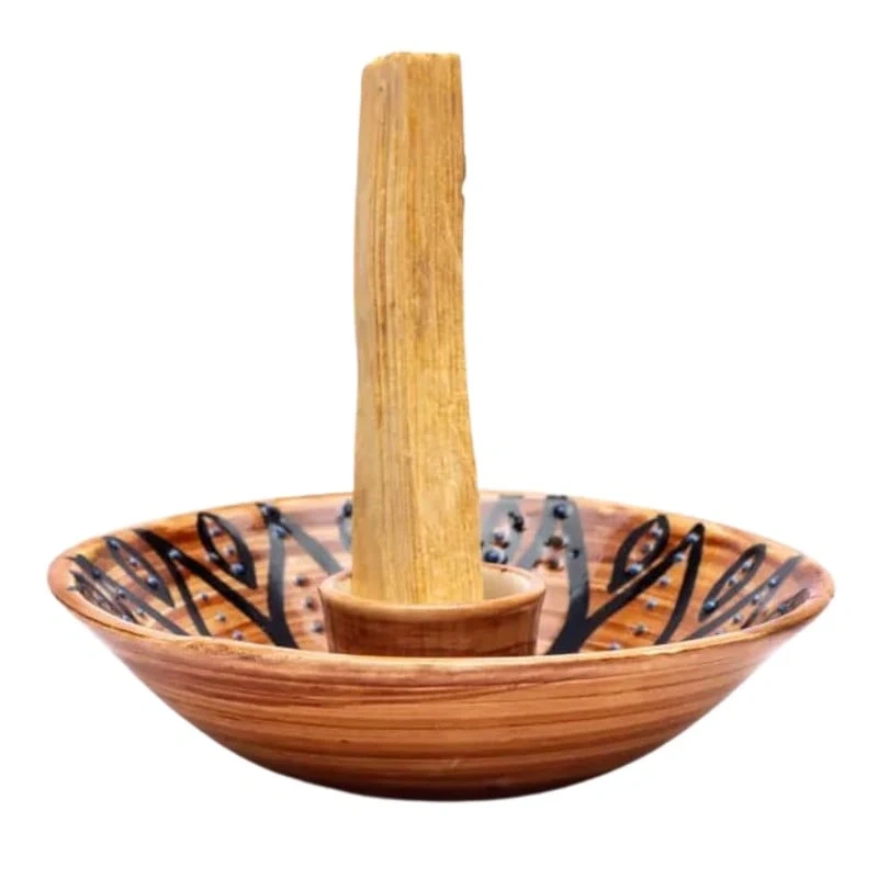 Dlaczego warto ją wybrać? Bo pozwala palić Palo Santo wygodnie, bez bałaganu i z pięknym dodatkiem do wnętrza. Stworzona z ceramiki, stabilna i odporna na temperaturę, posiada wysoką tulejkę, w której umieszczasz drewienko – dzięki temu popiół zostaje na talerzyku, a ogień jest dobrze kontrolowany.