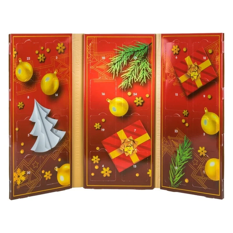 - Duży, efektowny kalendarz adwentowy z eleganckim, świątecznym motywem.