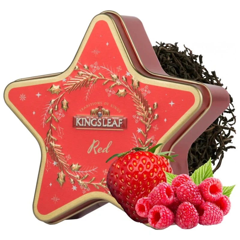 Kingsleaf Red – czarna herbata cejlońska z owocami w ozdobnej puszce gwiazdce.