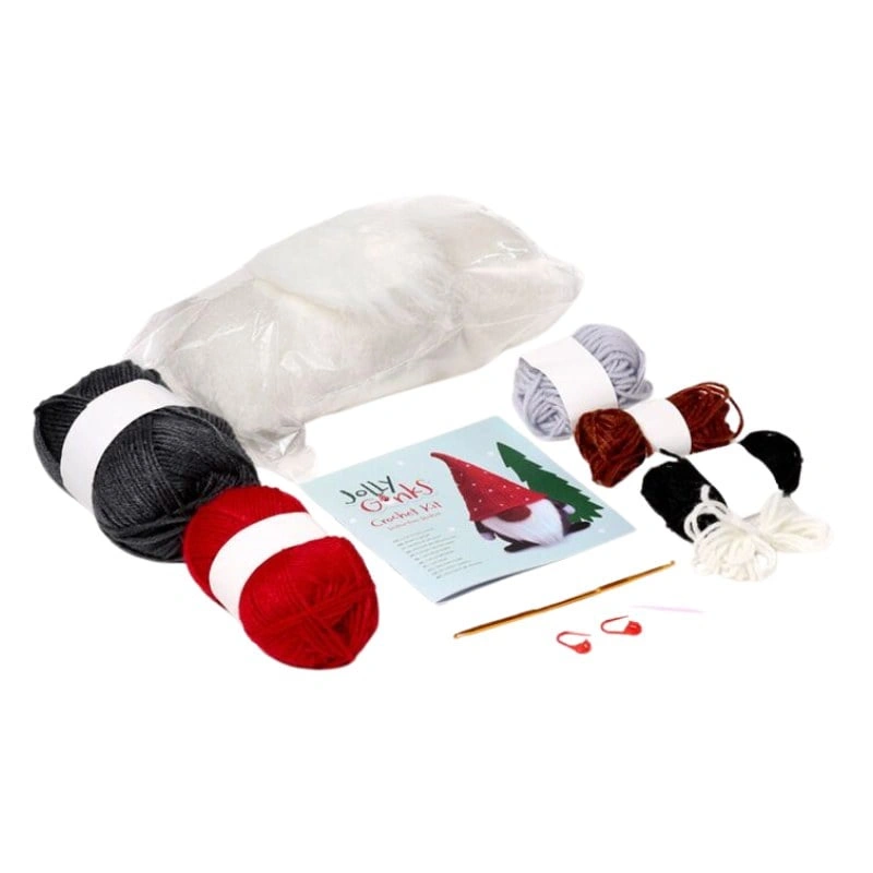 • Zestaw zawiera: wełnę x 6 kolorów, 1 szydełko, 1 plastikowa igła, 2 markery, 1 woreczek wypełnienia, 1 pluszowy materiał na brodę i pełną instrukcja.