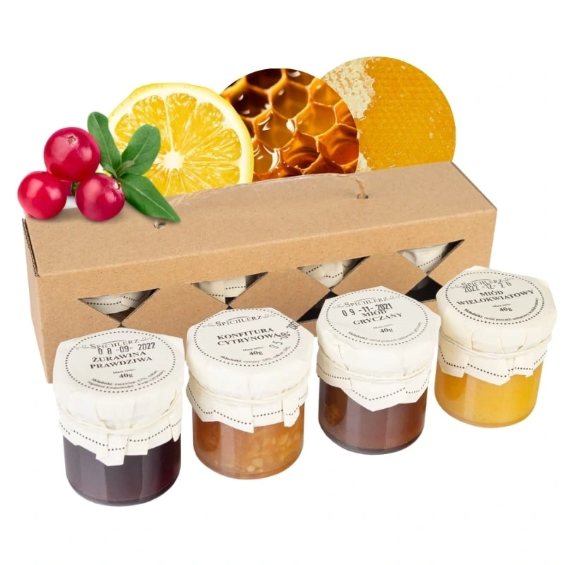 Zestaw przetworów i miodów na prezent, 4x40g Spichlerz