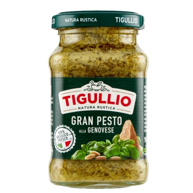 Sięgnij po Tigullio Gran Pesto alla Genovese i dodaj 1–2 łyżeczki do makaronu lub kanapki, by w kilka chwil uzyskać prawdziwie ziołowy, włoski smak.
