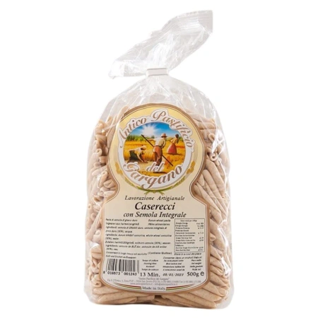- Caserecci con semola integrale to włoski makaron pełnoziarnisty w krótkiej, lekko skręconej formie, która bardzo dobrze trzyma sos.