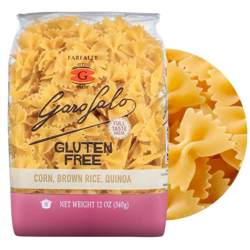 • Garofalo Farfalle to bezglutenowy makaron w kształcie kokardek, który po ugotowaniu zachowuje formę i dobrze smakuje w lekkich sosach oraz sałatkach