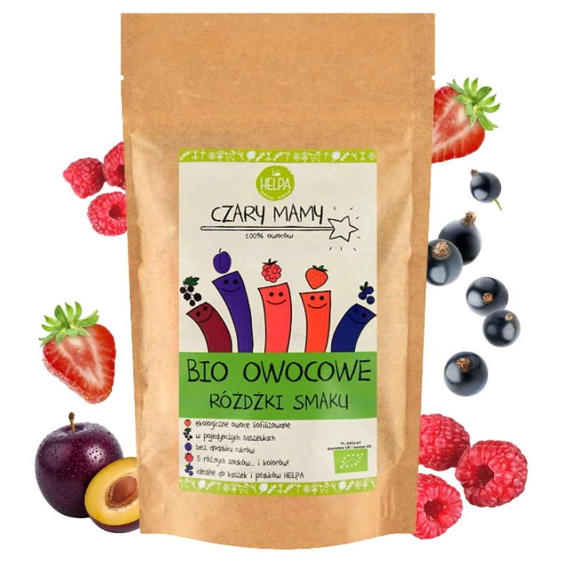- Skład: BIO Różdżka Smaku Truskawka (sproszkowana truskawka liofilizowana* 100% ) 20%, BIO Różdżka Smaku Malina (sproszkowana malina liofilizowana* 100%) 20%, BIO Różdżka Smaku Czarna Porzeczka (sproszkowana czarna porzeczka liofilizowana* 100%) 20%, BIO Różdżka Smaku Jagoda (sproszkowana jagoda liofilizowana* 100%) 20%, BIO Różdżka Smaku Śliwka (sproszkowana śliwka liofilizowana* 100%) 20% (*certyfikowany składnik ekologiczny)