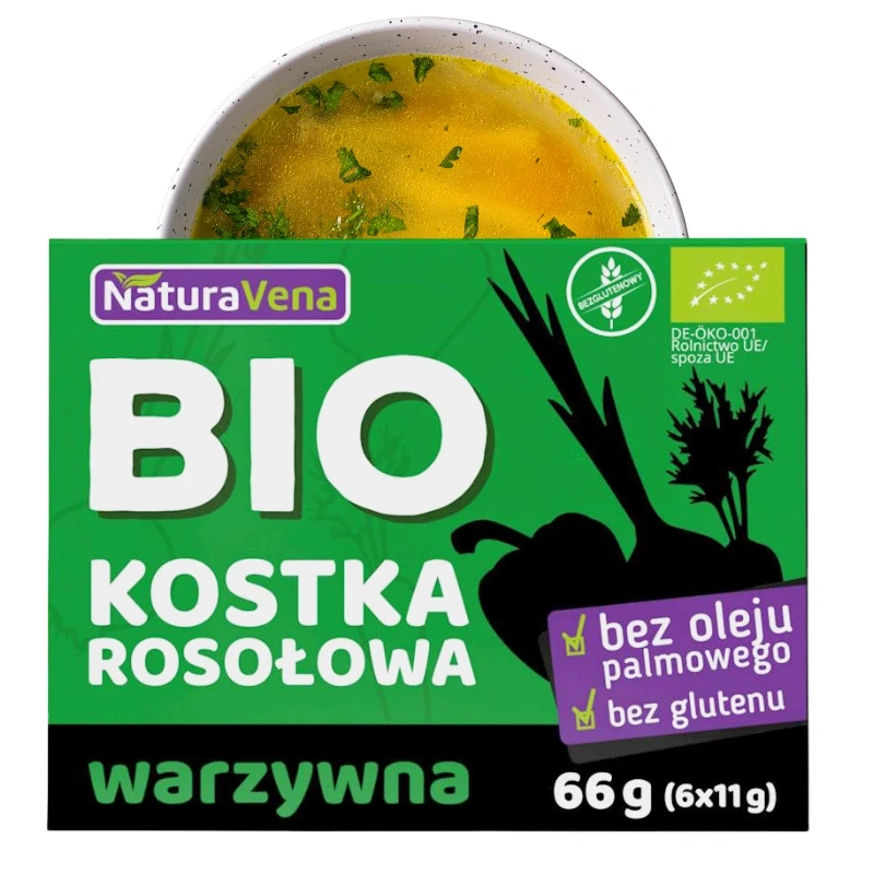 - Warzywna kostka rosołowa BIO to szybki sposób na podbicie smaku zupy, sosu lub kaszy bez długiego gotowania bulionu od zera. Sprawdza się, gdy potrzebujesz wyraźnej bazy warzywnej do codziennego gotowania, a jednocześnie chcesz trzymać prostszy skład.