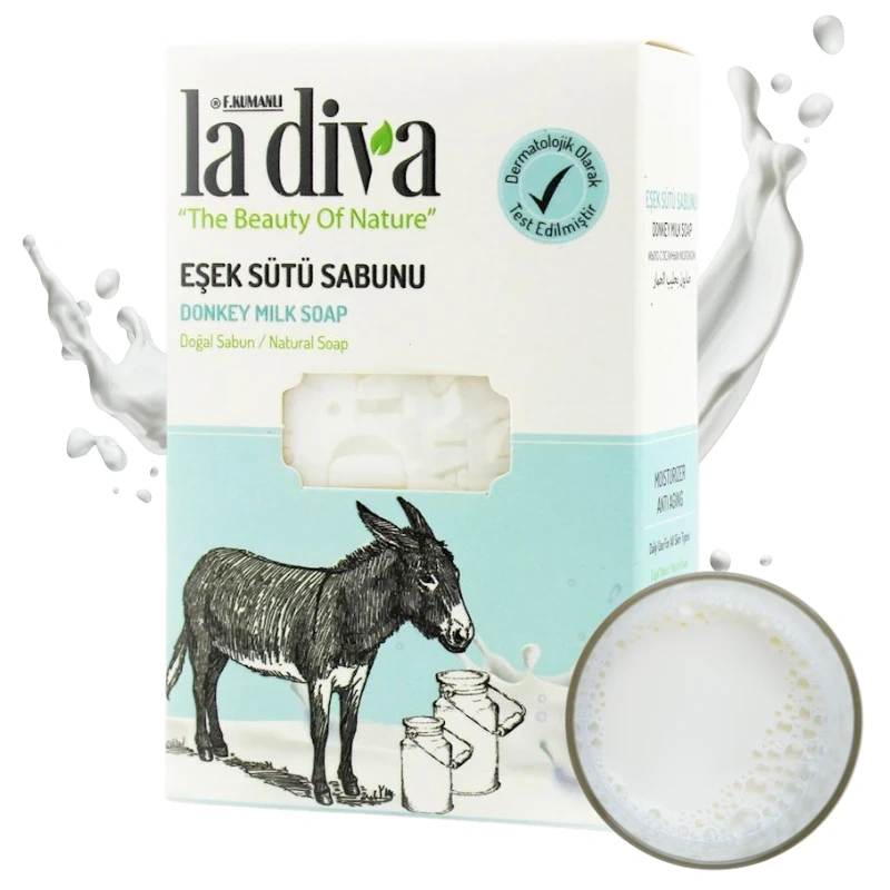 - Mydło z mlekiem oślim LaDiva to kostka do codziennego mycia ciała i włosów, która łączy klasyczne oczyszczanie z bardziej „kremowym” odczuciem na skórze.