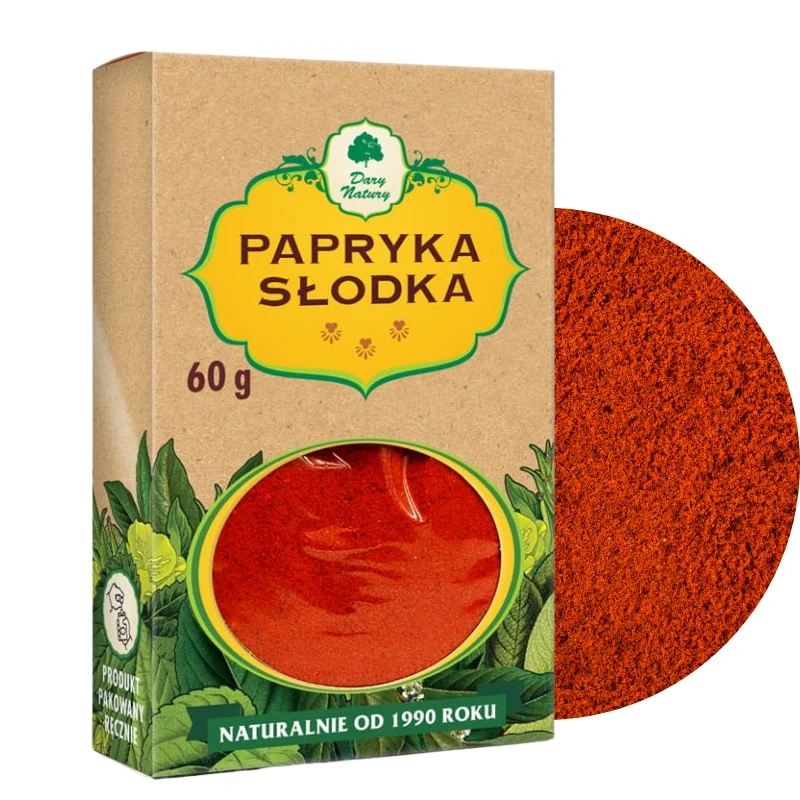 - Papryka słodka mielona to jedna z najbardziej uniwersalnych przypraw, bez której trudno wyobrazić sobie współczesne gotowanie. Marka Dary Natury dostarcza starannie wyselekcjonowaną paprykę o intensywnym, czerwonym kolorze i głębokim, łagodnym aromacie